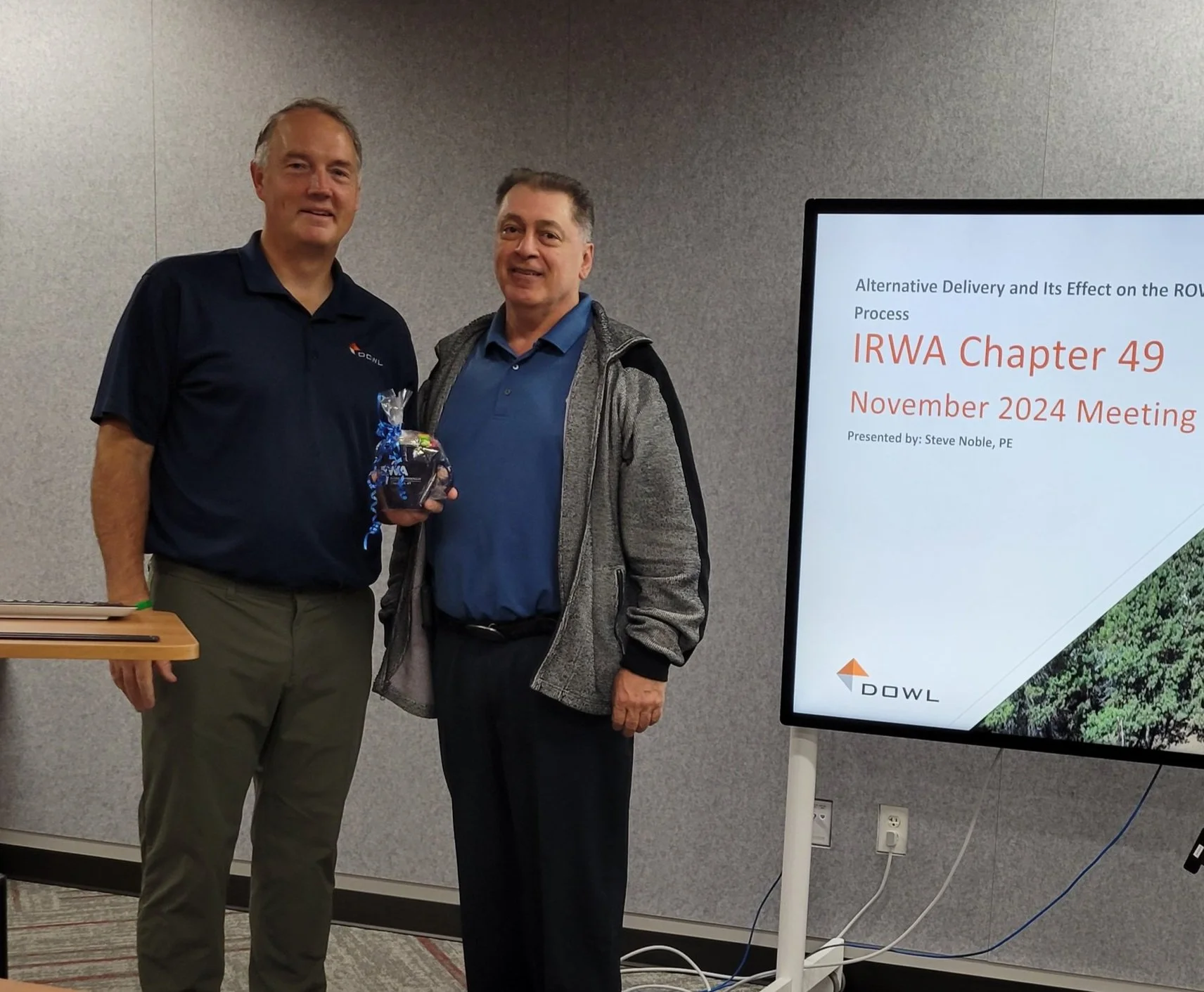 10.16.24 Steve Noble with DOWL Engineering presented in the Mat-Su Valley on Alternative Delivery Projects and the Cooper Landing Design/Build PJ. Seen w/Chapter 49 President, Manny Lopez.